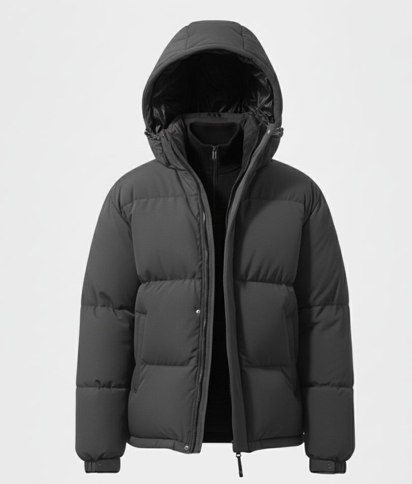 This men’s puffer jacket is quilted down designed for cold weather. The jacket includes a full-length front zipper with press-stud closures and adjustable drawcords at the waist and hem for a tailored style. Equipped with multiple pockets, including two outer pockets and one inner zip pocket, this jacket combines functionality with style, perfect for urban wear or outdoor adventures.