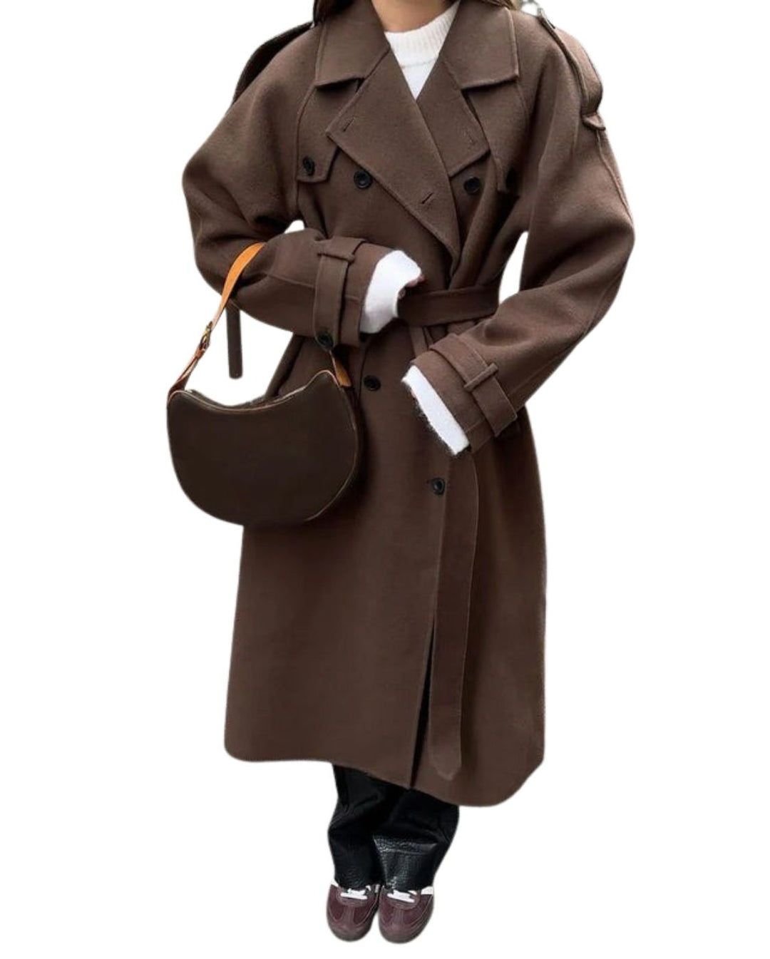 Women’s Belted Trench Coat with Layered Front and Inner Design