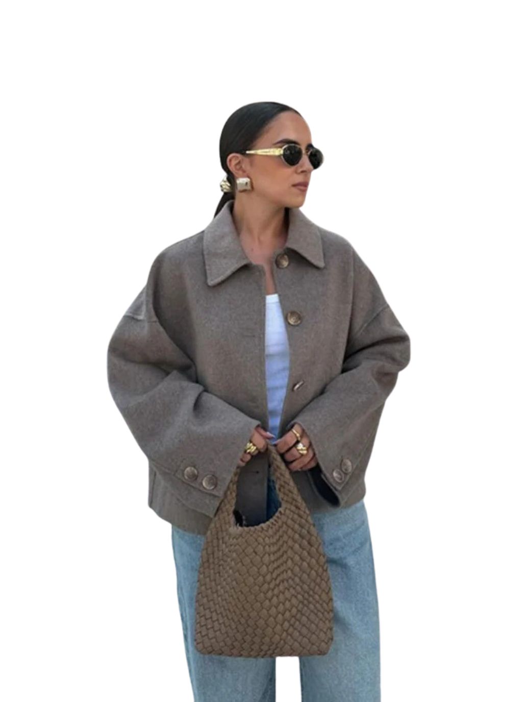 Women's High-neck Buttoned Jacket with Cropped Cut