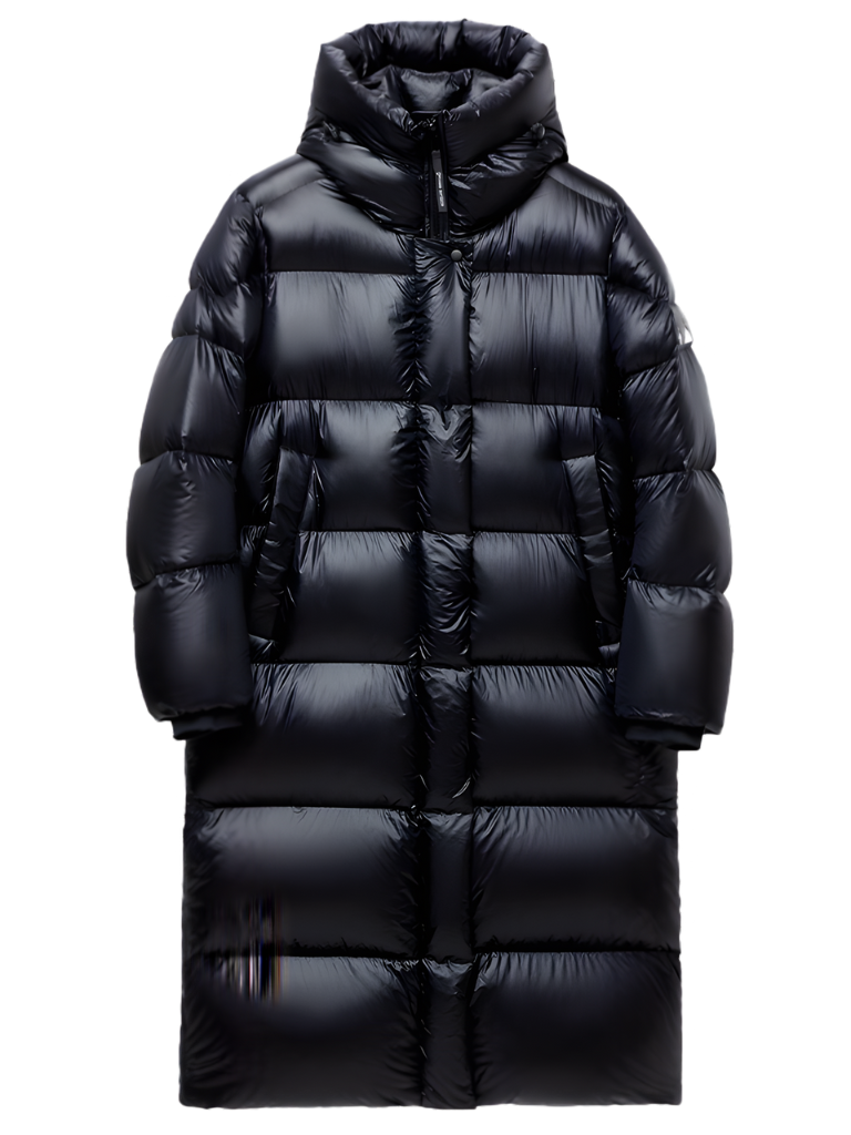 Women's Padded Long Jacket with Raised Neck and Full Front Zip