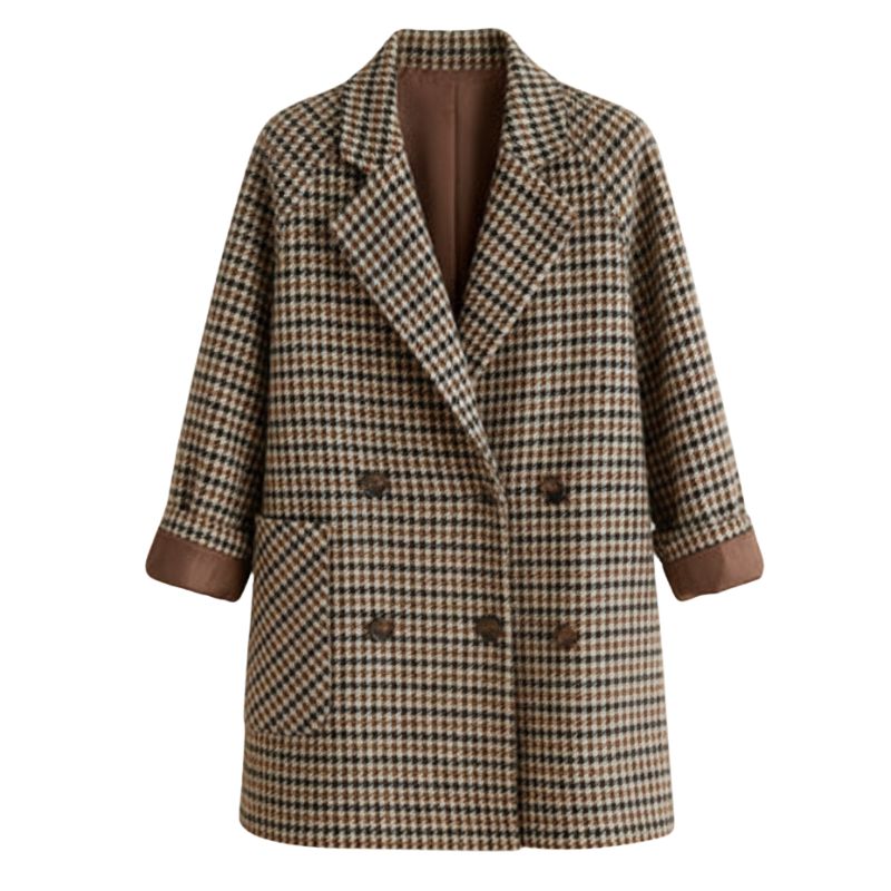 Women's Short Coat with Wide Folded Collar and Double-Button Front