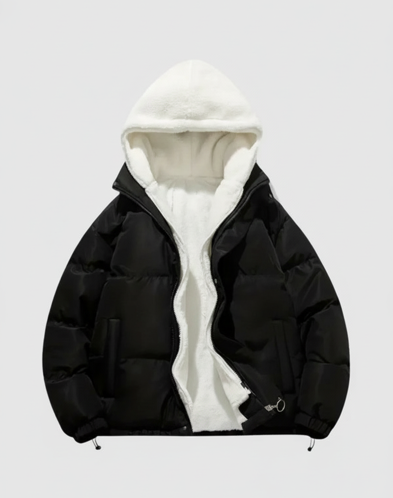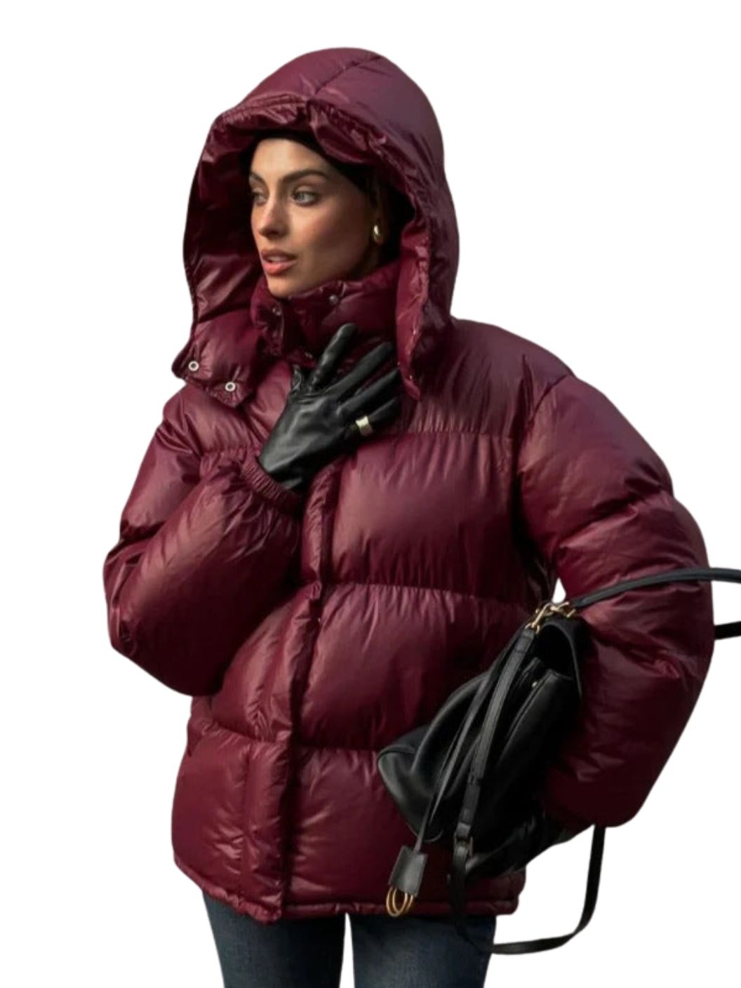 Women’s Padded Short Jacket with Fur Collar and Hood